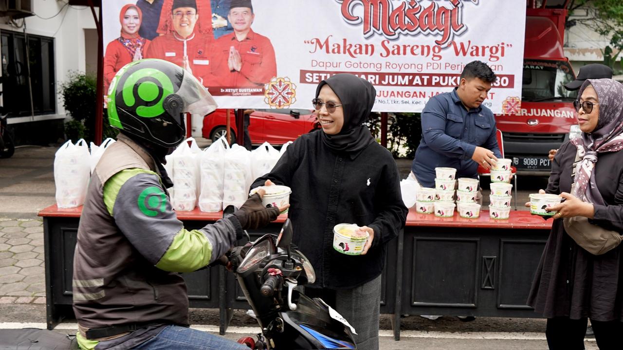 Jumat berkah kali ini, DPD PDI Perjuangan Jawa Barat menyiapkan sekitar 200 porsi makanan untuk dibagikan kepada masyarakat umum, seperti diantaranya ojol, tunawisma, sopir truk dan lainnya.