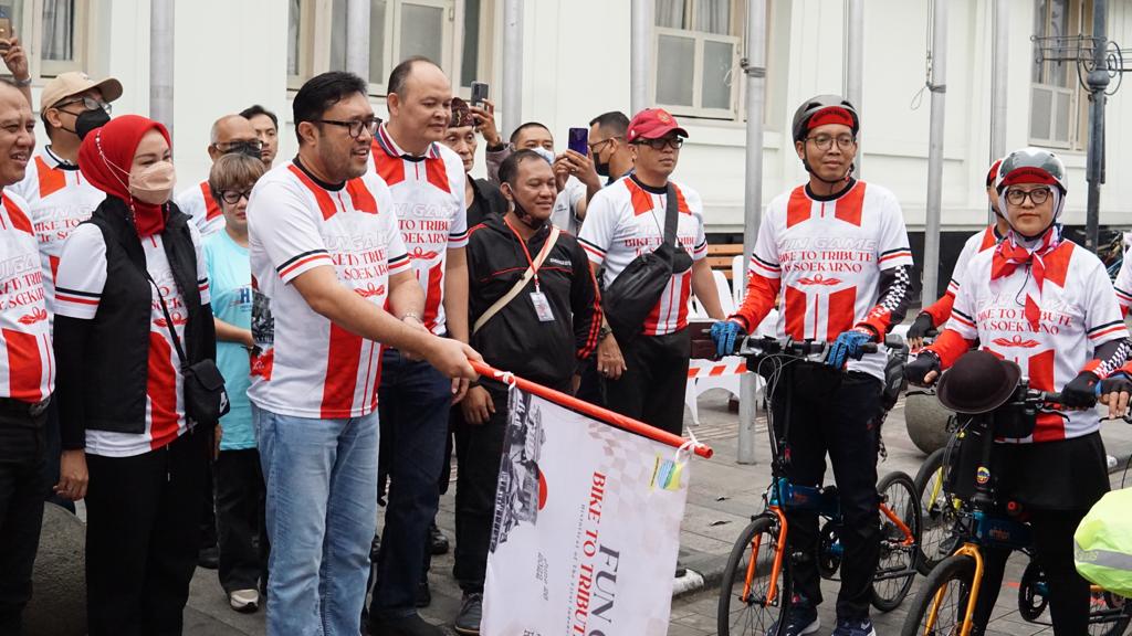 Peringati Bulan Bung Karno ratusan warga Bandung memeriahkan Fun Game Bike To Tribute Ir. Soekarno, Minggu (25/6).