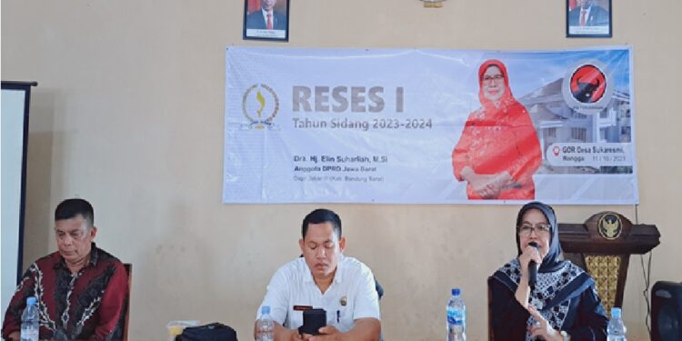 Dalam kegiatan Reses I DPRD Provinsi Jawa Barat tahun sidang 2023-2024, Anggota DPRD Provinsi Jawa Barat dari Fraksi PDI Perjuangan, Dra. Hj. Elin Suharliah, M.Si melaksanakannya di GOR Desa Sukaresmi, Rongga, Kabupaten Bandung Barat. Rabu, (11/10/2023).