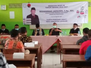 Anggota DPRD Provinsi Jawa Barat Komisi V (lima) dari fraksi PDI Perjuangan Muhammad Jaenudin S.Ag,.M.H kembali melanjutkan reses lll tahun sidang 2020-2021.Kali ini M Jaenudin menyambangi warga desa cibunar jaya, kecamatan ciambar, kabupaten sukabumi,masih daerah pemilihan Jabar V yang dimana beliau berangkat menjadi anggota DPRD Provinsi Jawa Barat.