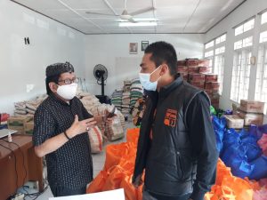 H Rudi Harsa Tanaya diterima staff Satgas covid 19 Kota Bogor Doni Ardianto. Di Posko ini sejak 4 Juli 2021 ini sudah memberikan bantuan sembilan kebutuhan pokok (Sembako) untuk warga Kota Bogor yang terkena covid dan menjalani isolasi mandiri (Isoman).