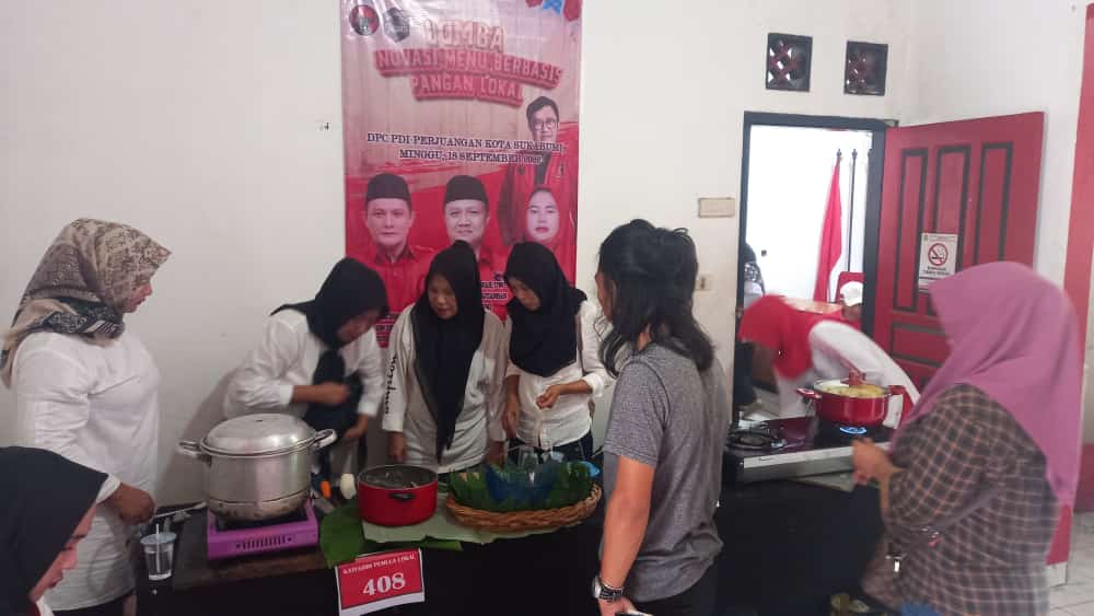 Kota Sukabumi – Dewan Pimpinan Cabang ( DPC ) PDI Perjuangan Kota Sukabumi menggelar lomba memasak Inovasi Menu Berbasis Pangan Lokal yang di ikuti 9 tim komunitas, peserta tersebar dari masyarakat di 7 Kecamatan Se-Kota Sukabumi.