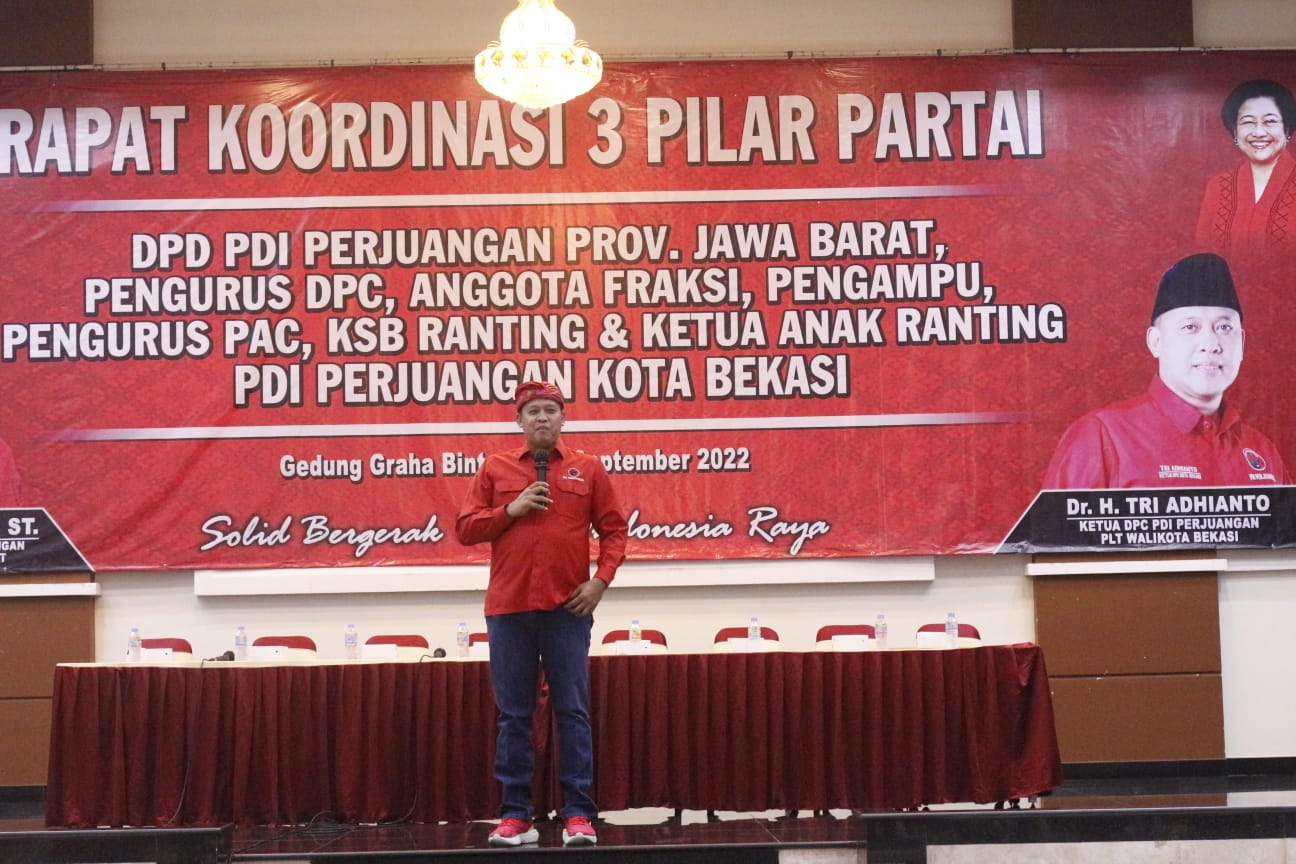Kota Bekasi – DPC PDI Perjuangan Kota Bekasi gelar Rapat Koordinas Tiga Partai yang diikuti oleh Pengurus DPC, Anggota Fraksi, PAC, Ranting dan Anak Ranting di Gedung Graha Bintang (04/09/2022).