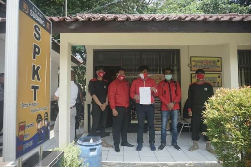 Didampingi oleh kader, Sekjen PDIP Subang Niko Rinaldo datangi Mapolres Subang untuk melaporkan hal tersebut, Kamis (01/10/20).