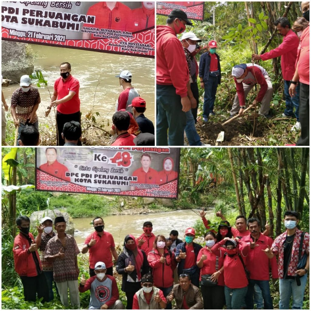 DPC PDIP Kota Sukabumi lakukan penanaman ratusan bibit pohon Mahoni dan pohon Pala di RW-06 dan 07 Kelurahan Sukakarya Kecamatan Warudoyong Kota Sukabumi 21/2/2021.
