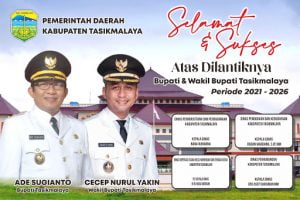 Gubernur Jawa Barat Ridwan Kamil resmi melantik bupati dan wakil bupati terpilih hasil Pilkada 2020 lalu, Ade Sugianto – Cecep Nurul yakin di Gedung Sate Bandung, Senin (26/4/2021). Pelantikan disaksikan oleh unsur Forum Komunikasi Pimpinan Daerah (Forkopimda) secara virtual di Pendopo Kabupaten Tasikmalaya.
