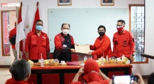 Penyerahan Surat Tugas oleh DPD PDIP Jawa Barat Kepada Sekretaris DPC Kota Cimahi, juga dilaksanakan Pemaparan Pengampu, beserta Pedoman teknis dan Tahapan Kerja yang dilaksanakan di Kantor Sekretariat DPC PDIP Kota Cimahi (22/09/21).